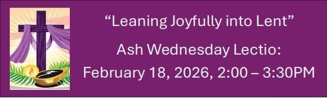 Our Ash Wednesday Lectio will be an opportunity to “lean into Lent” in a reverential and joyful way with other Gospel seekers. It will be a time to learn anew how Lent can refresh and replenish our spiritual lives. It will also provide an opportunity to see Ash Wednesday as a graced invitation to fast from actions and words that break communion, and feast on actions and words that build communion and joy - both internally and externally. It will be facilitated by Sisters Ann Muczynski and Colleen Leathley